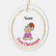 This Christmas ornament features a baby girl (in pink). On the front, customise this with the girl's name at the top. On the back type in the year you want or a birthdate? I also have this for a baby boy as well. Designed by Sheila Cicchi, Brownielocks.com. All Rights Reserved.