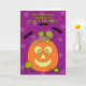 Create a keepsake for a special baby girl with this adorable pumpkin princess jack-o-lantern card for her first Halloween. Pretty purple background offers a wonderful contrast to the orange pumpkin, black bats and bright green cover text. Add her name, date and your special message for a card that will be treasured for years to come! Original art/design and verse are © Penny Cork.
