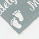 This trendy baby blanket features a custom name with foot prints.
