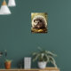 A poster for wildlife lovers, featuring AI generated digital painting of a cute baby hedgehog near a mountain stream.