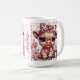 This pretty, personalised baby highland cow coquette style mug will make the perfect gift for any girl on your list - mum, daughter, friend, teacher, neighbour etc. The sweet design features a precious baby girl highland cow in coquette style with a leopard print pink bow on her head and another large pink bow around her neck. She wears pink rimmed glasses on her furry face and has large brown eyes. The background is pink and white gingham checks and roses with pink heart embellishment. Beside her is a clear iced coffee cup complete with lid, straw and cup holder. Customise the text template area in the centre of this mug for a name or word of your choice. I created this colourful piece utilising generative artp plus my own graphic design skills. I love it and hope you like it too!