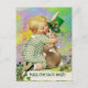 BABY HUGGING RABBIT St. Patrick's Day Shamrocks Postcard
