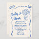 Baby in Bloom Blue Drawn Flower Bouquet Shower Invitation
