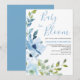 Baby in Bloom blue floral baby shower invitation. Trendy, pretty blue floral watercolor design. Easy to change the text.