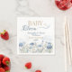 These “Baby in Bloom” napkins were inspired by a calm spring meadow filled with soft blue wildflowers and fluttering butterflies. The airy watercolor florals create a light, elegant look that adds a beautiful botanical touch to your baby shower table and celebration.