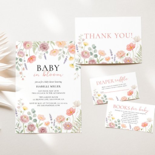 Baby In Bloom Blush & Teal Spring Floral Shower Invitation