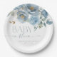 Baby in Bloom Dusty blue floral boy baby shower Paper Plate