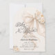 Celebrate the upcoming arrival of your little one with this timeless and luxurious baby shower invitation. Featuring a soft ivory palette, an oversized pearl-adorned bow, delicate florals this design exudes classic elegance and refined charm. The graceful typography and neutral tones make this invitation perfect for a baby girl baby shower. Ideal for formal celebrations, elegant venues, and parents who love a timeless, polished style. Matching items are available.