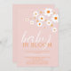 This cute invitation is decorated with hand-drawn white daisies on a soft pink background.