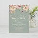 Celebrate the upcoming arrival of a little one with this stunning "Baby in Bloom" baby shower invitation. This "Baby in Bloom" invitation offers a sophisticated choice for those who appreciate a thoughtful balance of color and form over traditional, bright nursery motifs. The composition features a curated watercolor botanical header in muted tones, set against a calming sage green backdrop that feels both modern and timeless.