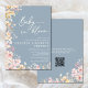Celebrate the upcoming arrival of a little one with this stunning "Baby in Bloom" baby shower invitation. Featuring a soft dusty blue background adorned with delicate watercolor florals in blush, peach, and cream tones, this elegant design exudes natural beauty and charm. The flowing script and serif typography add a timeless touch, while the matching floral back with a convenient QR code for easy RSVP or registry access complete the sophisticated look. Perfect for spring, garden, or floral-themed baby showers. Personalise it with your details!
