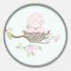 Adorable Baby Bird favour sticker. Matching invitations, thank you cards and postage stamp.