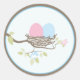 Adorable Pink and Blue Twin Eggs in Nest favour sticker. Matching invitations, thank you cards and postage stamp.