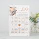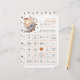Break the ice and get guests mingling with this Find the Guest Bingo baby shower game card. Featuring a cosy coffee cup, latte heart, and moka kettle in a simple rustic design, this fun icebreaker encourages guests to find other attendees who match each clue — like “is related to the mum-to-be” or “travelled an hour to be here” — and write their names in the squares. The first guest to get five in a row wins!