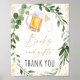 This design features watercolor greenery with a beer and baby bottle and gold foil accents.