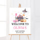 Baby is Brewing Pink Halloween Baby Shower Welcome Poster