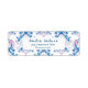 A baby is brewing garden tea party baby shower return adress label.This gender neutral baby shower features teacups with blush pink purple and blue flowers and butterflies with a macaron and a paper texture background,A perfect gender neutral rustic baby shower tea party theme.