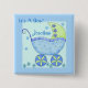 This badge pin will make a great announcement for your baby boy. This pin features a blue baby buggy with the words "It's A Boy" with the baby's name. This makes a good shower favour or great to hand out instead of cigars! The blue buggy is accented with light lime green colours and is on a light green background surrounded by a blue border. This pin coordinate with invitations, stamps and everything you need for your baby as well as for a baby shower. The buggy is stylish, cute and whimsy original art by Phyllis Dobbs. Fully customisable.