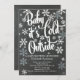 Modern chalkboard winter baby shower invitation featuring hand lettered typography "baby it's cold outside" surrounded by white snowflakes set on a contemporary black background for a gender neutral baby shower.