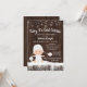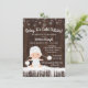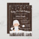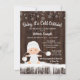 Baby it's cold outside baby shower invitation with adorable baby wearing a white snow outfit with hat on a rustic wood and snow snowflake background. These cute winter snowflake baby shower invitations are easily customised for your event by simply adding your details. This design works well for a snowflake or winter gender reveal invitation.