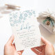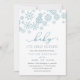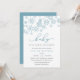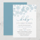 Brrr! Frosty chic invitations for winter baby showers feature a top border of snowflakes in blustery winter blue, with "baby it's cold outside" in blue and grey lettering. Personalise with your baby boy shower details beneath using the template fields. Cards reverse to solid light blue.