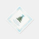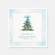 Elegant baby shower paper napkins featuring a cute Christmas tree and modern typography on a beautiful watercolor blue background.