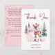 Baby it's cold outside girl baby deer baby shower editable template thank you card for winter themed baby shower. Cute baby deer wearing pink winter hat and scarf pink trees snowy background girls baby shower thank you card.