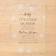 Invite guests in style with this Baby It’s Cold Outside gold snowflake baby shower acrylic invitation. Featuring elegant gold snowflakes and frosty winter details, this design is perfect for a winter baby shower, holiday celebration, or seasonal gathering. The clear acrylic format adds a modern, sophisticated touch, creating a beautiful keepsake invitation that sets a warm yet wintry tone for your event.