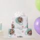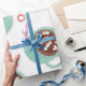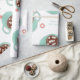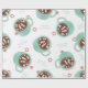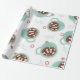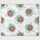 Christmas wrapping paper with snowmen made from marshmallows in a cup of hot chocolate. Vintage mint mixed with traditional Christmas reds and whites create a unique colour pallet. The text reads "Baby it's cold outside!" which gives it a fun twist.
