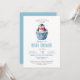 Baby it's cold outside. Winter boy baby shower invitation in blue with a cupcake and a cute penguin illustration. Personalise it with your party details, registry names, and RSVP information.