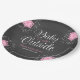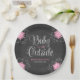Chic winter themed baby shower paper plates. Featuring a script font with the phrase "Baby It's Cold Outside", with pink and white snowflakes on a chalkboard background design. Modern and cute for a girl baby shower.