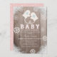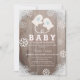 This cute and rustic "baby, it's cold outside" girl virtual/zoom/online baby shower invitation card features rustic wood background with a pair of white gloves, white snowflakes and snow on the corners. The reverse side features baby pink background with white snow patterns. Perfect for winter showers. Personalise it for your needs. You can find more polar bear products at my store.