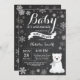 Baby Its Cold Outside Polar Bear Winter Baby Shower Invitation. Boy or Girl Baby Shower Invitation. Winter Holiday Baby Shower Invite. White Snowflakes. Snowman and Chalkboard Background. For further customisation, please click the "Customise it" button and use our design tool to modify this template.