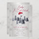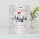 Winter themed, "Baby It's Cold Outside" polar bear with a santa hat gender neutral Baby Shower in grey and red with semi-opaque centre panel and grey winter evergreen fir trees. Simply personalise with baby shower details. Composite design by Holiday Hearts Designs (rights reserved).