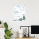 Winter Wonderland baby shower welcome sign with blue snowflakes and pine trees.
