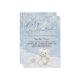 Invite guests to a beautiful winter celebration with this elegant "Baby, It's Cold Outside" baby shower invitation! The design features a charming, soft teddy bear and tiny baby boots sitting in a snowy, serene landscape, framed by delicate snowflakes. The classic script and soft blue/white palette create a gender-neutral and timeless feel, perfect for welcoming a little one during the cold season. Easily customize all the party details for your dreamy winter wonderland baby shower.