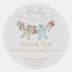 These gender neutral winter Baby Shower Thank You stickers feature a cute hand-drawn illustrations of pajama bodysuits, plush animals and baby bibs hanging on a clothesline. Customisable name, event, date and a personal thank you message. Elegant soft grey background.