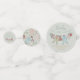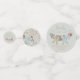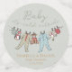 Large confetti: A cute hand-drawn illustrations of pajama bodysuits, plush animals and baby bibs hanging on a clothesline. Customisable name, event, date.
