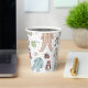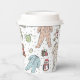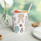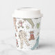 These gender neutral winter Baby Shower paper cups feature a cute pattern of hand-drawn illustrations of Christmas pajama bodysuits, plush animals, baby bottles, bibs, pacifiers, presents and tiny yellow stars. Elegant white background.