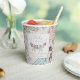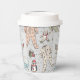 These gender neutral winter or holiday season Baby Shower paper cups feature cute pattern of hand-drawn illustrations of Christmas pajama bodysuits, cute plush animals, baby bottles, pacifiers, presents and tiny yellow stars. Customisable name and event. Elegant soft grey background.