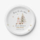 This enchanting baby shower paper plate features a cute watercolor illustration of a baby bottle and Christmas tree in winter tones. Ready to be personalized by you!