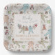 These gender neutral winter or holiday season Baby Shower paper plates feature cute hand-drawn illustrations of Christmas pajama bodysuits and plush animals on a clothesline and customisable name and event. Elegant ivory background.
