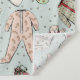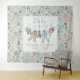 This gender neutral "Baby its cold outside" winter Baby Shower backdrop featurea cute hand-drawn illustrations of Christmas pajama bodysuits and plush animals on a clothesline and customisable name and event, all against a pattern of pajama bodysuits, plush animals, baby bottles, bibs, pacifiers, gifts and tiny yellow stars. Elegant soft mint green background.