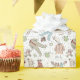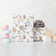This gender neutral "Baby it's cold outside" winter Baby Shower custom wrapping paper features a cute hand-drawn illustration of winter baby pyjamas, stuffed animals and bibs hanging on a clothesline, against a pattern of Christmas pajama bodysuits, plush animals, baby bottles, bibs, pacifiers, presents and tiny yellow stars. Customisable name, event and date. Elegant white background.