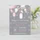 Baby its Cold Outside Winter Mason Jar Baby Shower Invitation. Boy or Girl Baby Shower Invitation. Pink and White Snowflakes. Mason Jar. Floral Flowers. String Lights. Grey Background. For further customisation, please click the "Customise it" button and use our design tool to modify this template.