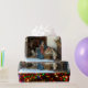 This is called a Village Nativity! The nativity scene with baby Jesus, Mary and Joseph. The background is multi-coloured stars! You can see a villager opening the door to visit Jesus and the Holy Family.