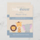 A neutral baby shower invitation featuring a baby lion, giraffe and elephant. Perfect when the gender of the baby is unknown. (<a href='http://www.freepik.com/free-vector/invitation-for-baby-shower-with-lovely-animals_876112.htm'>Designed by Freepik</a>). <br/><br/>The card is easy to customise with your wording, font, font colour and choice of six paper types.<br/><br/>Not exactly what you're looking for? All our products can be custom designed to meet your needs at no extra charge.<br/><br/>Simply contact us at askcottonlamb@gmail.com<br/><br/>Coordinating products available: