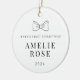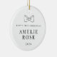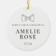 Celebrate your baby's first Christmas with this elegant and timeless ornament, personalised with your baby's name and the year 2024. Featuring a simple, classic design with a cute bow illustration and modern typography, this keepsake will hold cherished memories for years to come. Perfect as a gift for new parents or to add a special touch to your own tree, this ornament is a beautiful way to commemorate this precious milestone."
