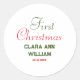 BABY KIDS FIRST CHRISTMAS HOLIDAY ADD NAME TEXT YE CLASSIC ROUND STICKER