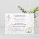 Christian invitation with lamb on pale purple floral and butterfly background and cross with two hearts. This invitation is suitable for first holy communion, confirmations, baptisms or christenings. Can be easily customised with the details of your event. Invitations come complete with envelopes.